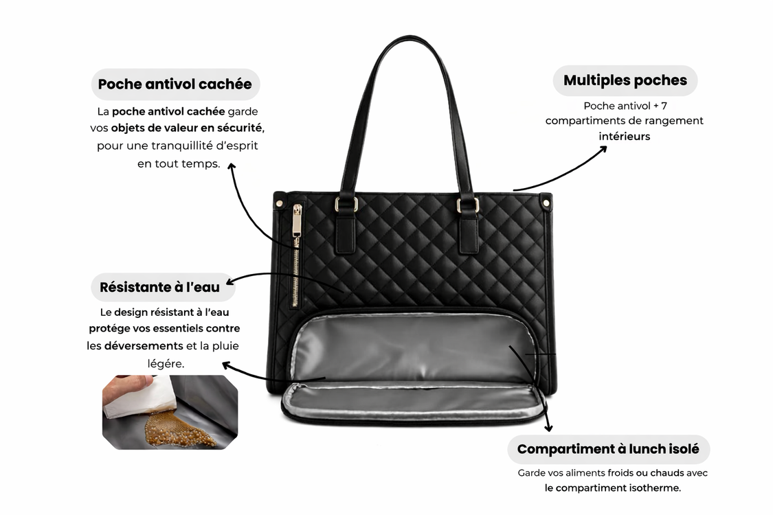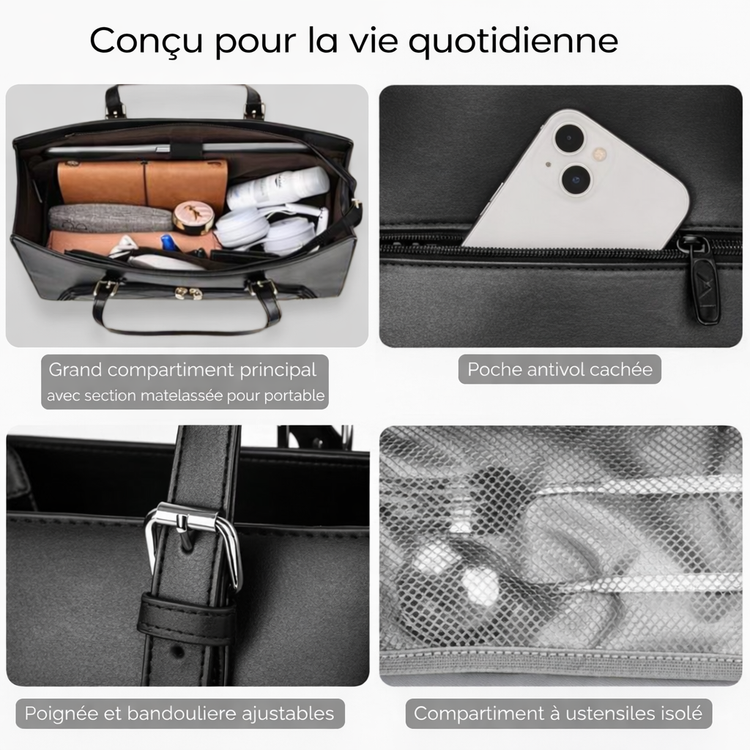 Je travaille par quarts de 12 heures et j'ai toujours détesté porter deux sacs. Ce sac a tout changé. Mon lunch reste frais et le compartiment du haut peut contenir ma blouse, ma bouteille d'eau et mes affaires essentielles. En plus, il est vraiment élégant <33