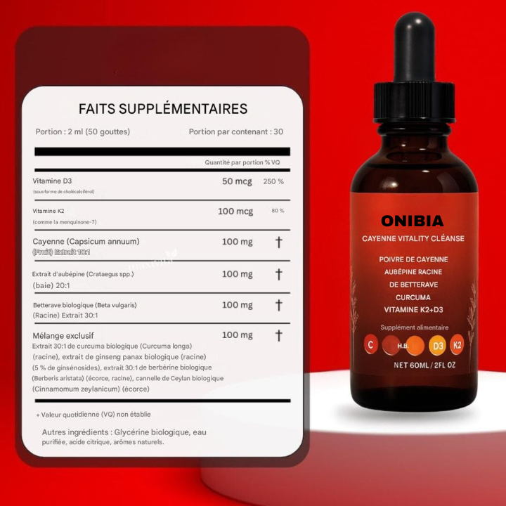 L'huile d'origan Onibia™ contient 6 000 mg d'huile d'origan et 200 mg d'huile de nigelle par gélule. Nos gélules, sans goût et faciles à avaler, sont végétaliennes et sans gluten, produits laitiers, soya, sucre, OGM ni allergènes courants. Testées par un organisme indépendant pour leur pureté, chaque dose contribue à votre bien-être grâce à ses bienfaits antibactériens, antiviraux et anti-inflammatoires naturels.