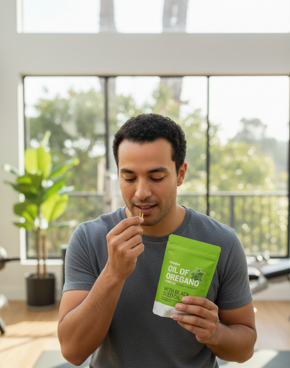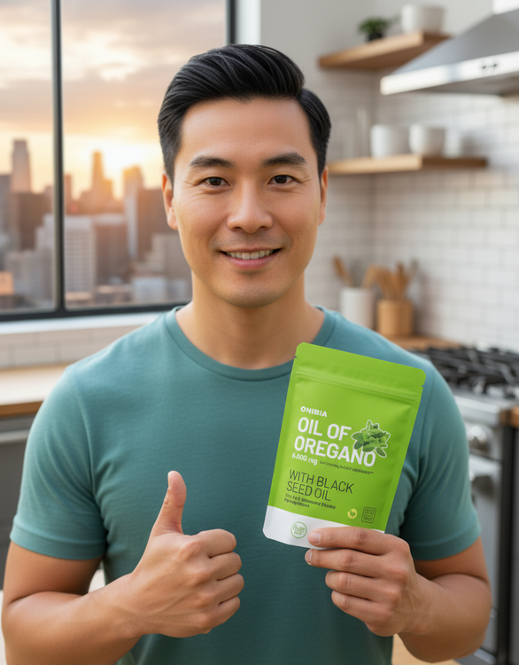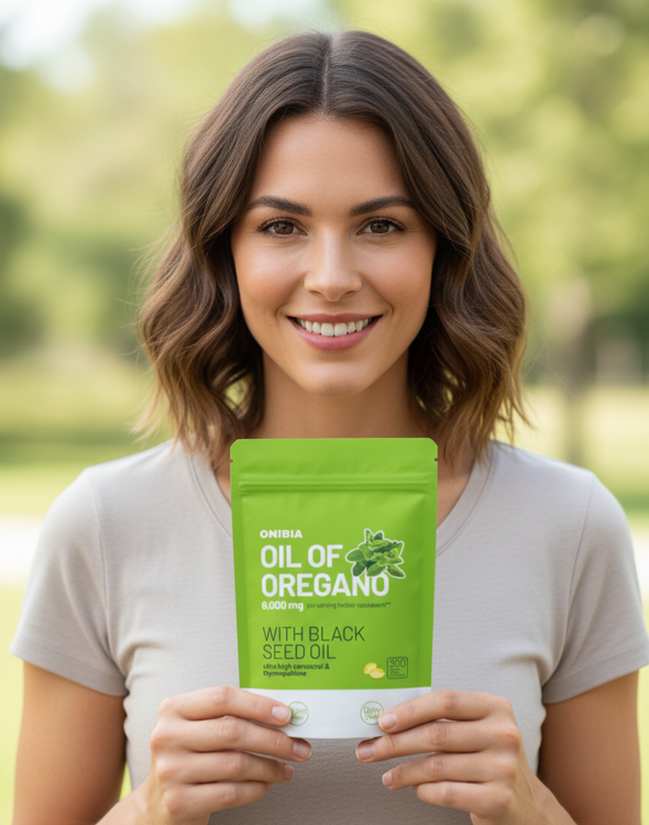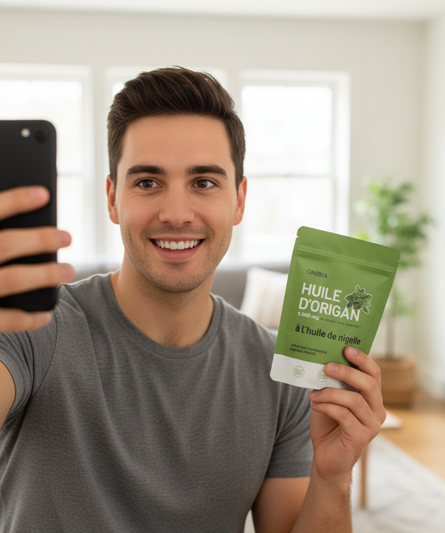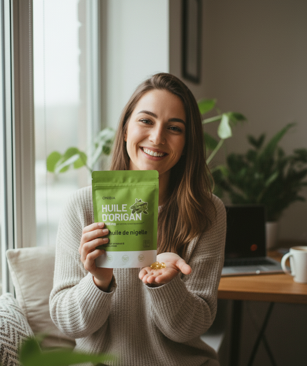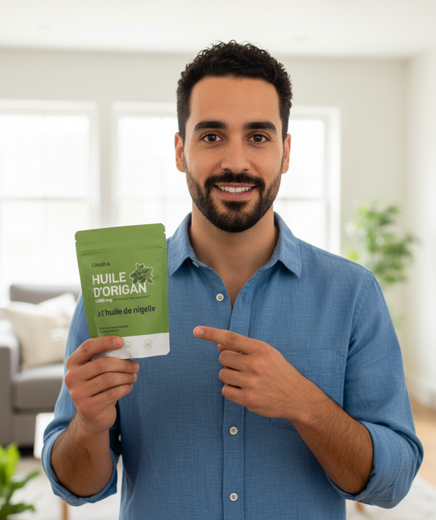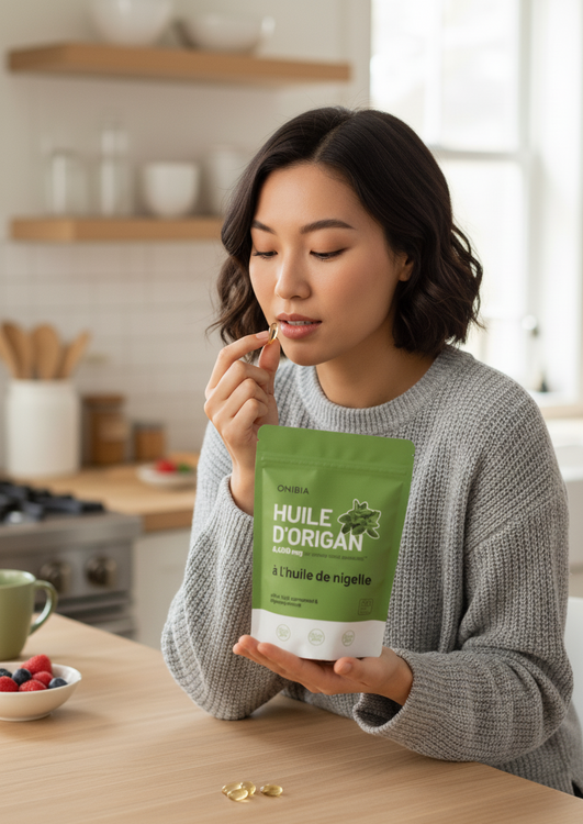 L'huile d'origan Onibia™ contient 6 000 mg d'huile d'origan et 200 mg d'huile de nigelle par gélule. Nos gélules, sans goût et faciles à avaler, sont végétaliennes et sans gluten, produits laitiers, soya, sucre, OGM ni allergènes courants. Testées par un organisme indépendant pour leur pureté, chaque dose contribue à votre bien-être grâce à ses bienfaits antibactériens, antiviraux et anti-inflammatoires naturels.
